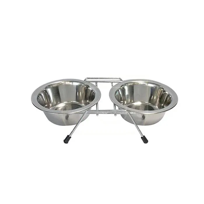 Orijin Oripet Ayaklı İkili Krom Kaplı Mama Kabı 2x220 ml